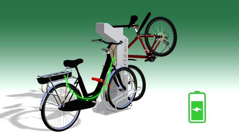 Une station vélo 3 en 1 permet aux cyclistes de réparer leur vélo, regonfler leurs pneus et recharger leur vélo électrique au même endroit.