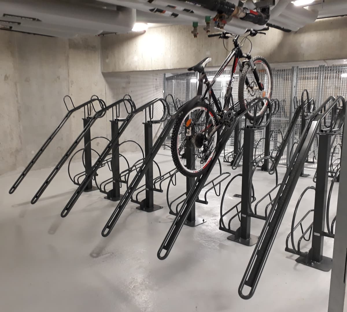 Idéal pour garer un maximum de vélos dans un minimum d’espace avec une hauteur sous plafond basse : Parking des gares, locaux vélo d’immeubles, abris vélos…